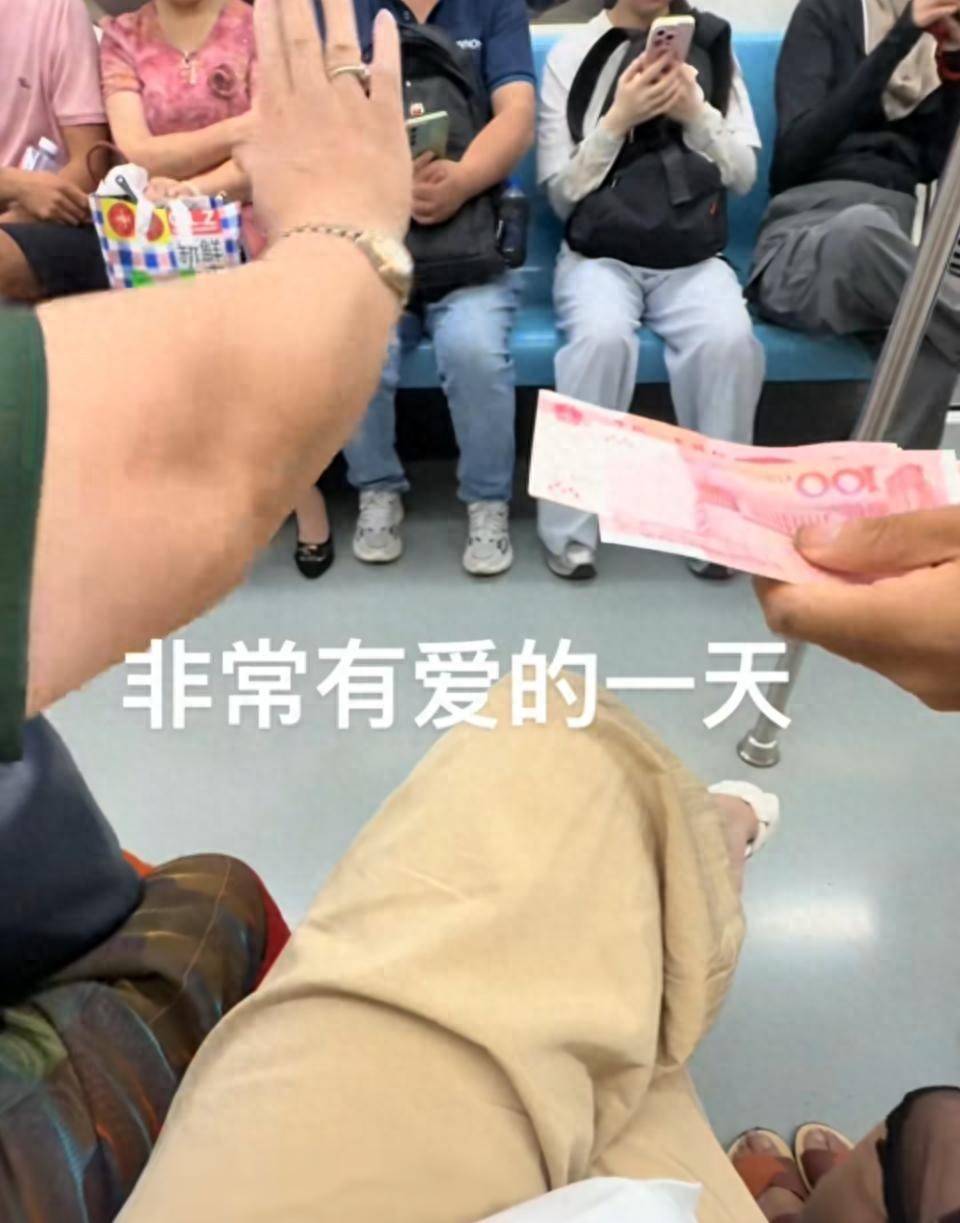 坐在黄女士左侧的老阿姨突然从包里掏出百元大钞,将500元递到男孩手中。男孩非常惊讶,连声说不要,阿姨坚持让男孩收下。